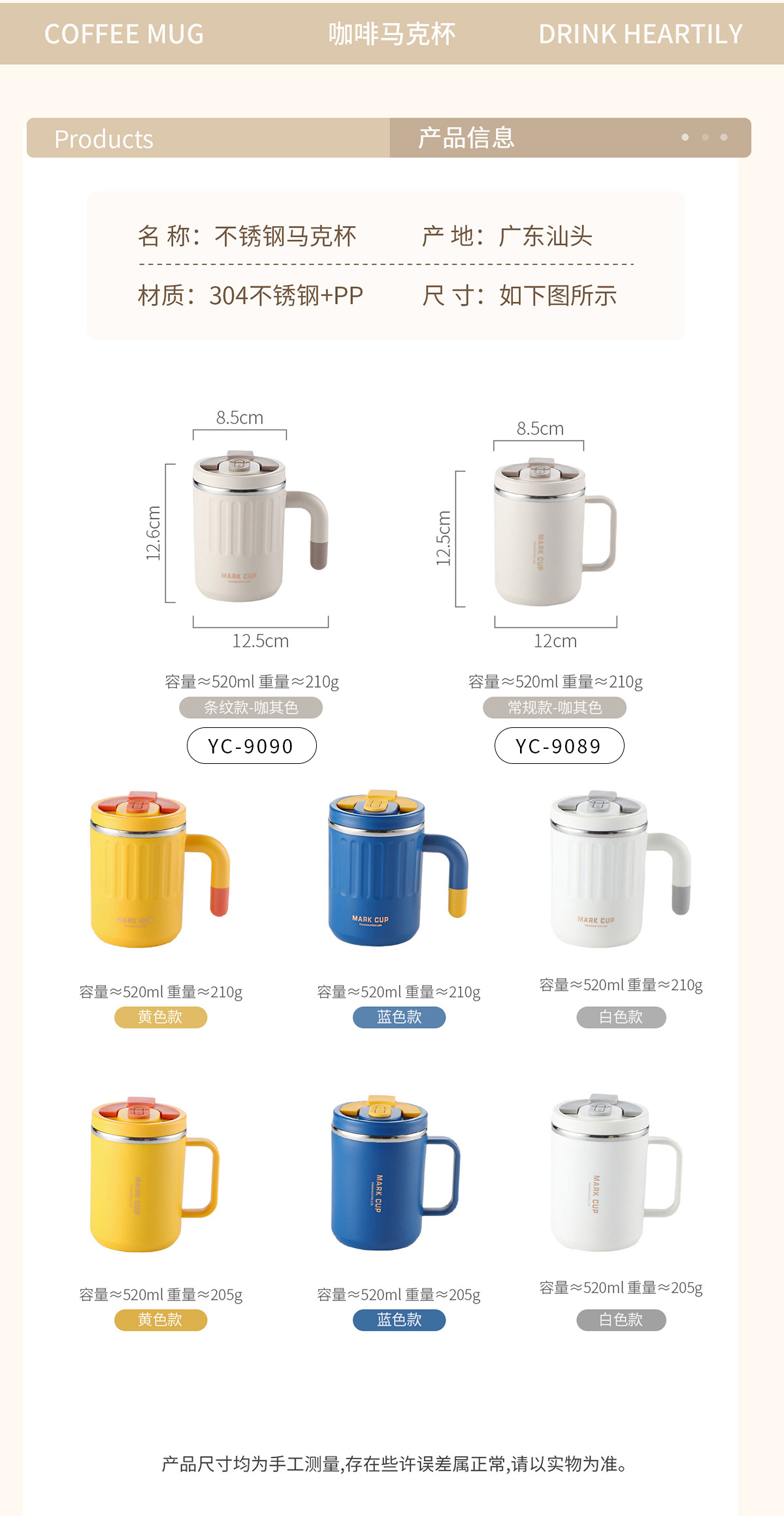 不銹鋼馬克杯(常規款/條紋款)520ml